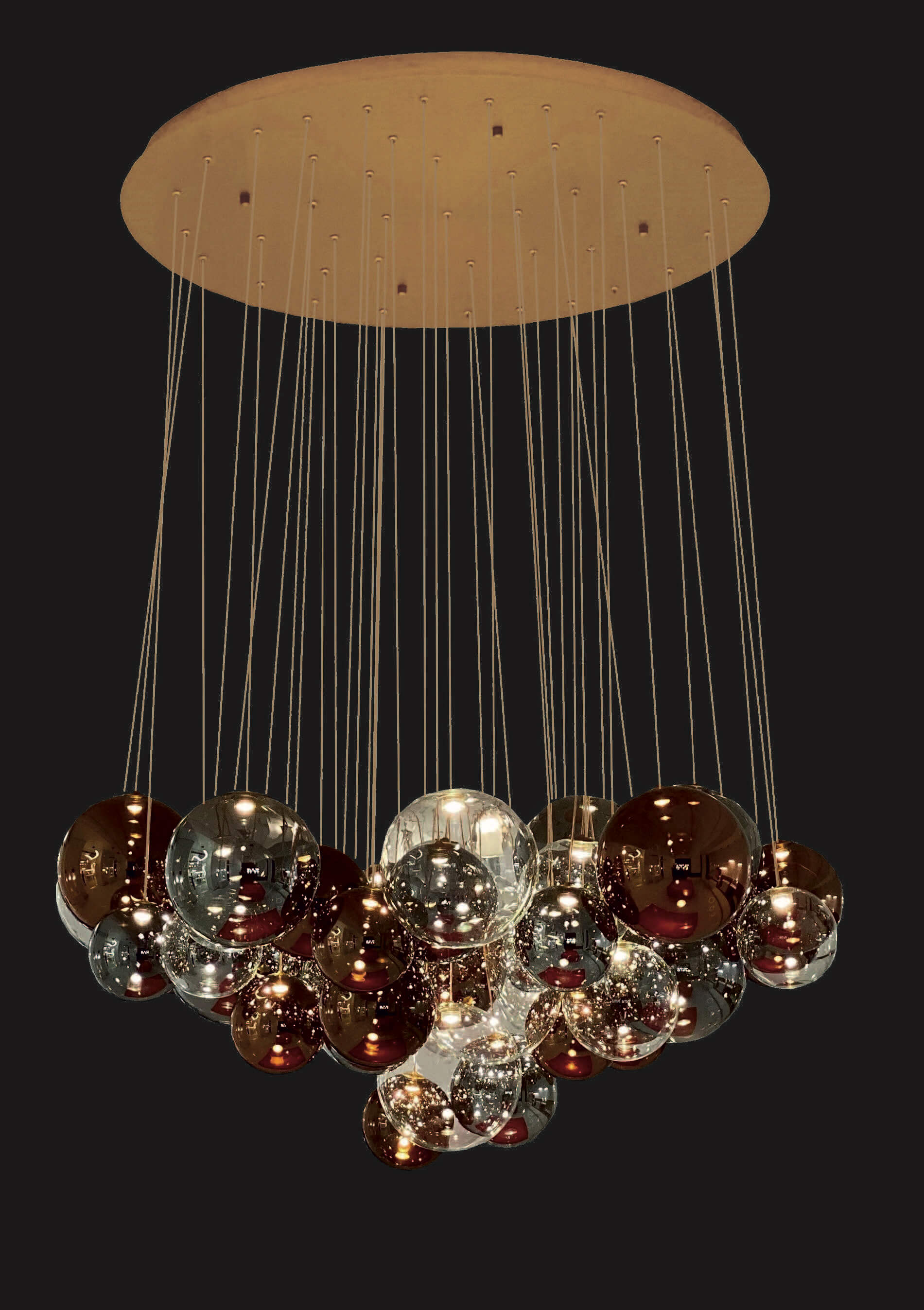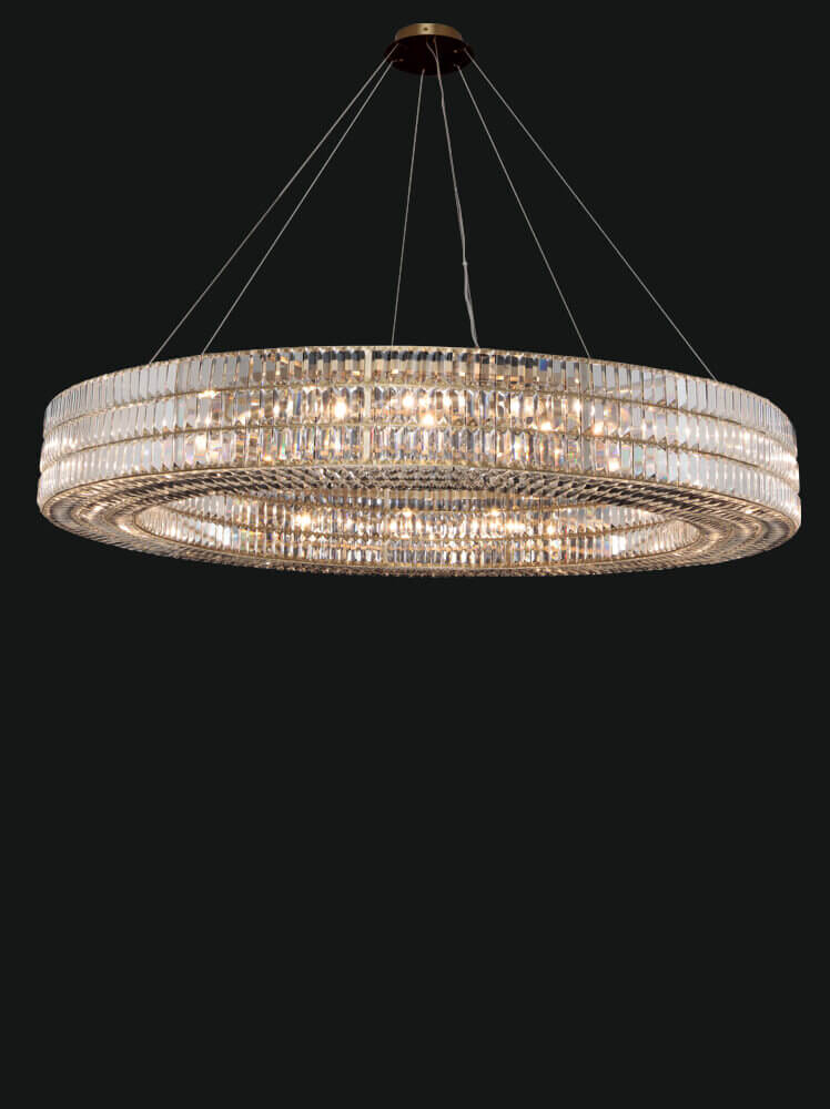 Люстра NCS 172/1/100 ∅ 90 см - H. 45 см Металл + хрусталь Количество источников света: 40*G9 Возможные цвета металлов: блестящее золото матовое золото розовое золото бронза блестящий хром матовый хром